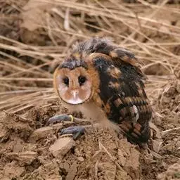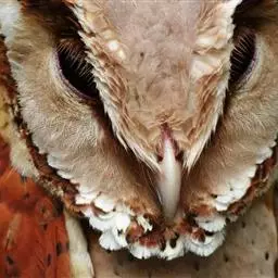栗鸮:是鸟纲、草鸮科的猫头鹰。体长约29厘米,体重311-360克。是一种中等体型的红褐色鸮。…