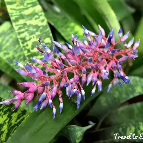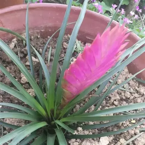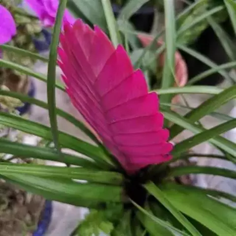 紫花凤梨,是凤梨科铁兰属的多年生草本植物。株高不及30厘米;叶片拱状线形,叶丛族生于短缩茎上,…