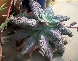 巧克力方砖为景天科拟石莲花属多肉植物,输中小型品种。植株肉质叶排成松散的莲座状。褐红色的叶片向内凹陷有明显的波折,叶缘有轻微米黄色边,强光下或者温差大,叶片会出现漂亮的紫褐色,如巧克力颜色。弱光则叶色浅褐绿,叶片拉长。植株叶面光滑,不容易积水。叶片无白粉,巧克力方砖需要接受充足日照叶色才会艳丽,株型才会相对紧凑美观,多年群生后,植株会非常壮观,特别是多年修剪过的老桩。巧克力方砖簇状花序,和大多数的石莲花一样的花型。