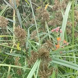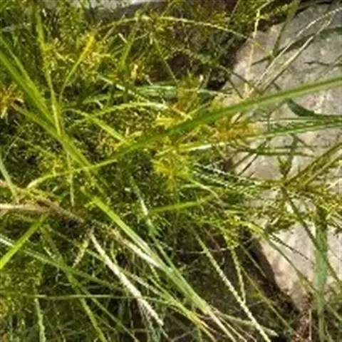 水莎草 多年生草本,散生。根状茎长。秆高35-100厘米,粗壮,扁三稜形,平滑。叶片少,短于秆或有时长于秆,宽3-10毫米,平滑,基部折合,上面平张,背面中肋呈龙骨状突起。