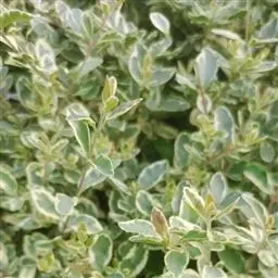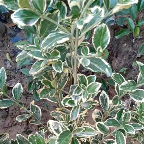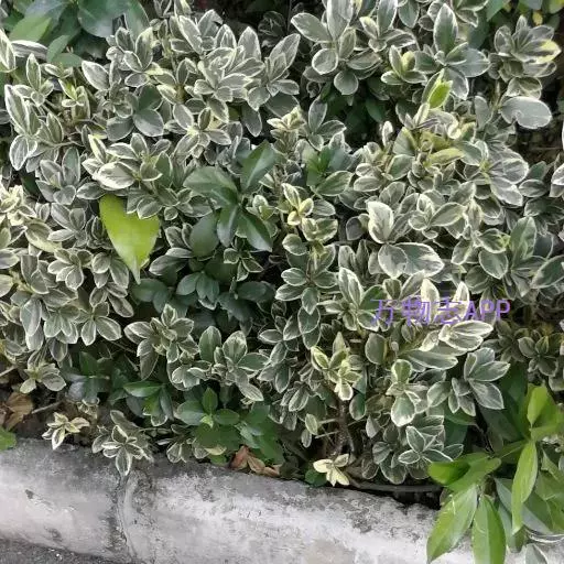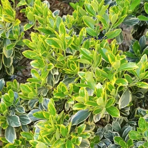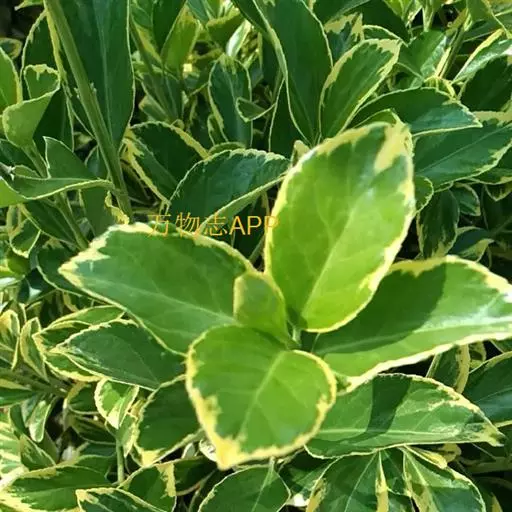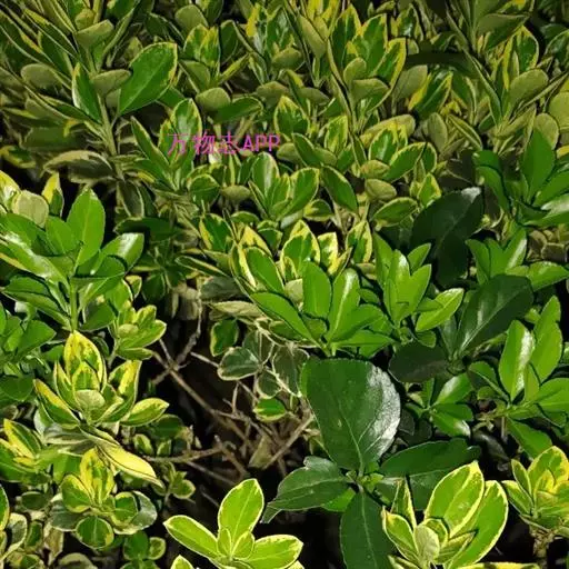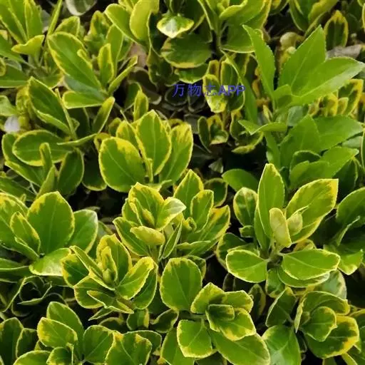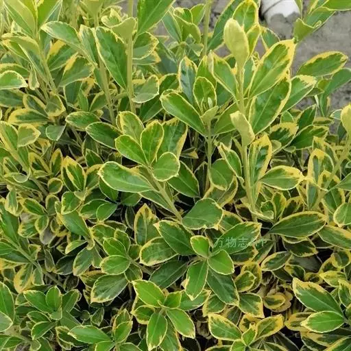 金边黄杨,又名:金边冬青卫矛、正木、金边七里香。卫矛科卫矛属植物,冬青卫矛的变种之一。属常绿灌木或小乔木,小枝略为四棱形,枝叶密生,树冠球状--单叶对生,倒卵形或椭圆形,边缘具钝齿,表面深绿色,叶缘金黄色,有光泽。聚伞花序腋生,具长梗,花绿白色。蒴果球形,淡红色,假种皮桔红色。拉丁文学名为Buxus megistophylla.
