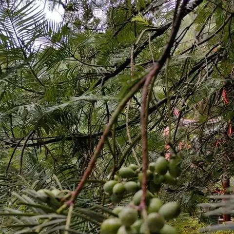 三尖杉是红豆杉科三尖杉属乔木。株高达20米;树皮褐色或红褐色,裂成片状脱落,树冠广圆形;枝条较细长,…