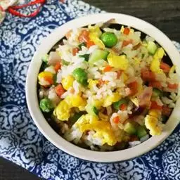 什锦炒饭是一道色香味俱全的名点,以江苏扬州的炒饭最知名。虾仁去泥肠洗净,加料酒、胡椒粉、淀粉上浆。…