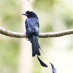 黑卷尾(学名:Dicrurus macrocercus)是雀形目卷尾科的鸟类。全长约30厘米。通体黑色,上体、胸部及尾羽具辉蓝色光泽。尾长为深凹形,最外侧一对尾羽向外上方卷曲。栖息活动于开阔地区,繁殖期有非常强的领域行为,性凶猛,非繁殖期喜结群打斗。主要取食昆虫。平时栖息在山麓或沿溪的树顶上,在开阔地常落在电线上。数量多,常成对或集成小群活动,动作敏捷,边飞边叫。主要从空中捕食飞虫,主要以夜蛾、蝽象、蚂蚁、蝼蛄、蝗虫等害虫为食。分布范围是伊朗至印度、中国、东南亚、爪哇及巴厘岛。