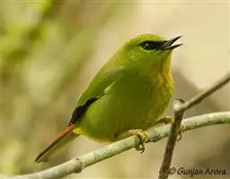 • 火尾绿鹛是莺科、绿鹛属小型鸟类,体长11-14厘米。上体绿色,头顶至枕具黑色鳞状斑,眼先和眼后黑色,…