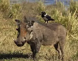 非洲疣猪:也称普通疣猪,体重在50-75千克之间,因眼部下方具疣而得名,在挖土取食时,…