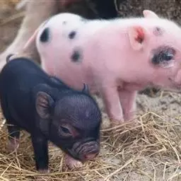 越南大肚猪——这种小猪可能是今天最流行的品种。它们拥有吸引人的外形和驯服的性格。他们夸张的背部和大肚子(其他动物喂得过饱的标志)是完全正常和健康的。它们平均身高大约35厘米,平均体重大约45斤。