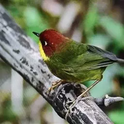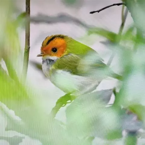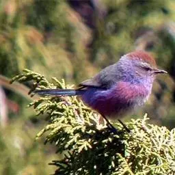 凤头雀莺:小型鸟类。体长9-10厘米,雄鸟呈毛茸茸的紫色和绛紫色,顶冠淡紫灰色,额及凤头白色,尾全蓝。…