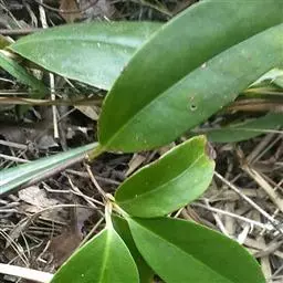 叶单生,互生,长椭圆形或倒卵状椭圆形,长 8~15 公分,宽 3~5 公分,先端渐尖,基部渐狭,革质,全缘但略反卷,侧脉不明显,表面有光泽无毛茸;叶柄长 0.6~1 公分。