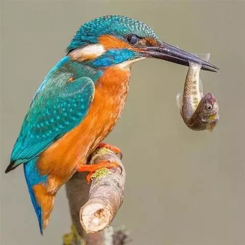 食物以小鱼为主,兼吃甲壳类和多种水生昆虫及其幼虫,也啄食小型蛙类和少量水生植物。翠鸟扎入水中后,还能保持极佳的视力,因为它的眼睛进入水中后,能迅速调整水中因为光线造成的视角反差。所以捕鱼本领很强。