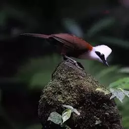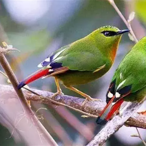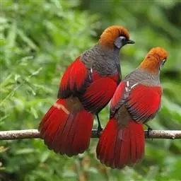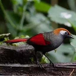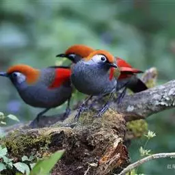 赤尾噪鹛中型鸟类,体长24~28厘米。头顶至后颈红棕色,两翅和尾鲜红色,眼先、眉纹、颊、颏和喉黑色,…