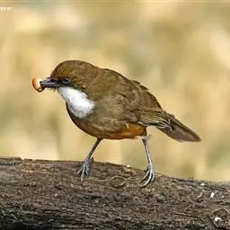 白喉噪鹛中型鸟类,体长26~30厘米。前额或整个头顶棕栗色,其余上体橄榄褐色。颏、喉白色,…