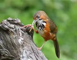 剑嘴鹛:中型鸟类,体长21-22厘米。嘴特别细长而向下弯曲,头顶和头侧烟灰色具长而窄的白色眉纹,…