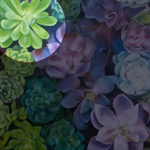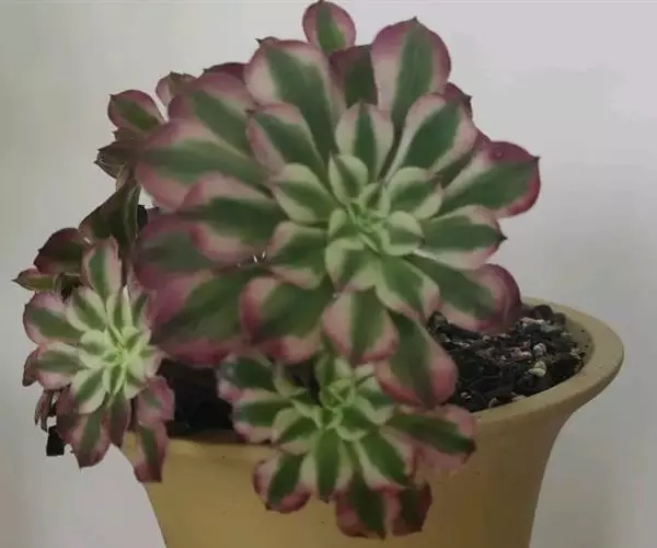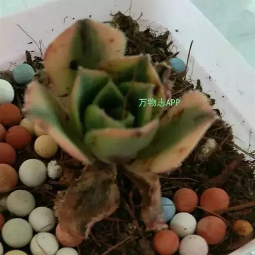 此品种经常和灿烂的混淆,实为两种不同品种。灿烂(Aeonium percarneum f. variegata)叶片更为宽厚,成株尺寸也较大,可达20-30厘米,锦斑明显。