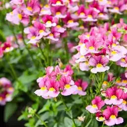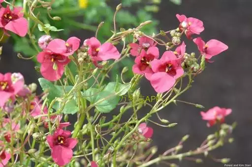多年生草本植物,植株高25至40厘米,茎细长,单叶对生,叶片三角状卵形,花序总状,小花有两个距,花色丰富,有红、粉、白等。双距花适应性广,花形奇特,可用于盆栽或布置花坛。株高:25-35cm 冠幅:30-35cm