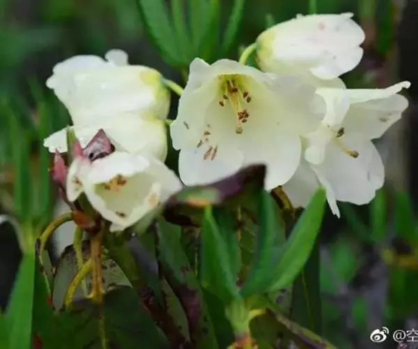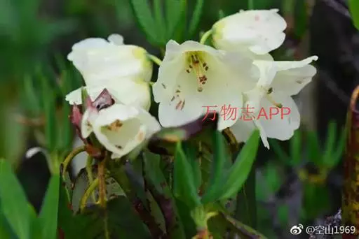 与黄杯杜鹃的主要区别:花冠纯白色,叶长卵形。花期5-6月。