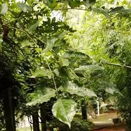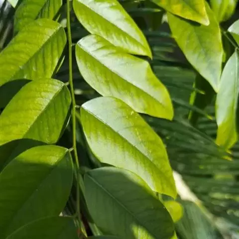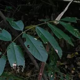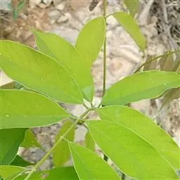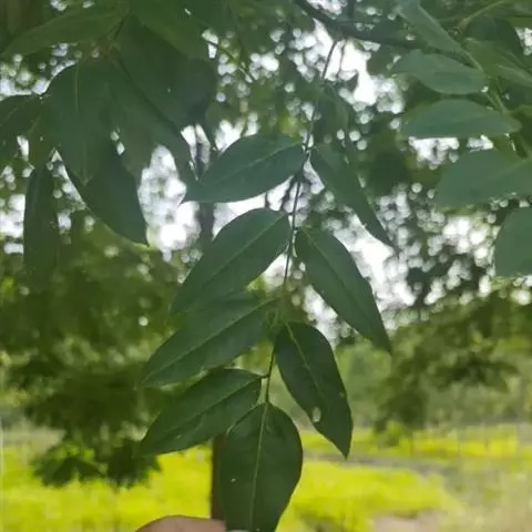 小叶3-5对,纸质,长椭圆形或卵状披针形,长5-16厘米,宽2-6.5厘米,先端尾状渐尖,基部圆钝;侧脉纤细,近平行,两面明显;小叶柄粗短,长2-3毫米。