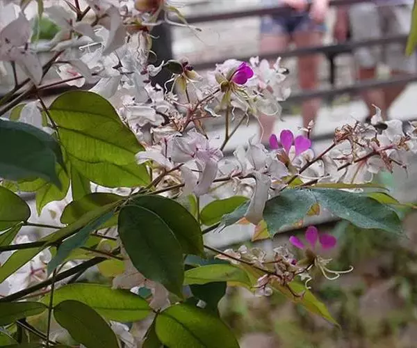 仪花(学名:Lysidice rhodostegia Hance)是豆科,仪花属灌木或小乔木,高可达5m,很少超过10m。小叶片3-5对,纸质,先端尾状渐尖,基部圆钝;侧脉纤细,小叶柄粗短,圆锥花序,总轴、苞片、小苞片均被短疏柔毛;苞片、小苞片粉红色,萼管比萼裂片长,萼裂片长圆形,暗紫红色;花瓣紫红色,子房被毛,花柱细长,荚果倒卵状长圆形,果瓣常成螺旋状卷曲;种子长圆形,褐红色,种皮较薄而脆,6-8月开花;9-11月结果。