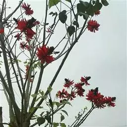 刺桐,是豆科刺桐属乔木植物。树皮灰褐色;分枝有圆锥形黑色皮刺;叶柄无毛,无刺;花密集,…