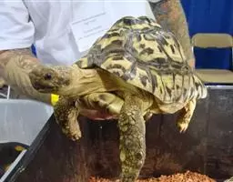 豹纹陆龟是陆龟科、豹龟属爬行动物。背甲高隆,椭圆形,黑色或淡黄色;背甲每块盾片上具黄白色或黑色环斑,…
