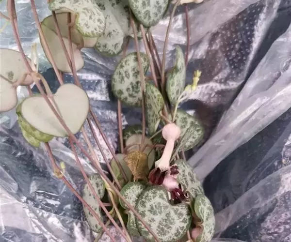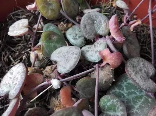 光照:该种性喜散射光,夏季要避免强光照射,否则容易引起叶片灼 开花中的爱之蔓 伤,影响植株生长。 一年中春、秋、冬三季每天可以见二小时左右的晨光,夏季散光即可,但如果养护环境长期过阴而光线不足,则会造成节间易徒长,失去观赏价值。