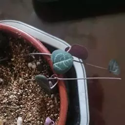 爱之蔓(学名:Ceropegia collaricorona ssp. collaricorona Werderm.)是萝藦科,吊灯花属多肉植物 Ceropegia collaricorona Werderm. 的指名亚种。多年生,植株从带有结节的块茎中生出并匍匐生长,块茎灰色,质地坚硬、有褶皱。从中萌生出数根紫色、线状的匍匐茎。该种会在叶腋处长出圆形块茎,称“零余子”,有贮存养分、水分及繁殖的功用。叶对生,肥厚肉质,呈心形;叶深绿色,叶面上有灰、白色网状花纹,叶背呈紫红色。花朵自叶腋生出,较细长,壶状,为鲜艳的红褐色。花托隆起,紫色。果实羊角状。