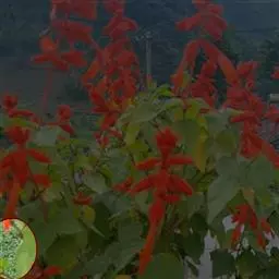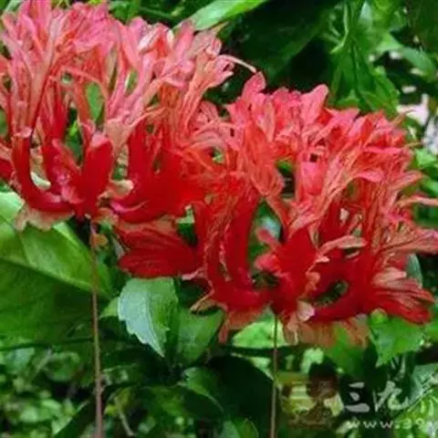 花朵自叶腋2厘米处生出,花较细长,壶状,颜色鲜艳,红褐色,长约2.5厘米。花托隆起,呈紫色。花后结出羊角状的果实。该种花期为春季、夏末至早秋,每朵花可持续开放约6周。 [7-9]