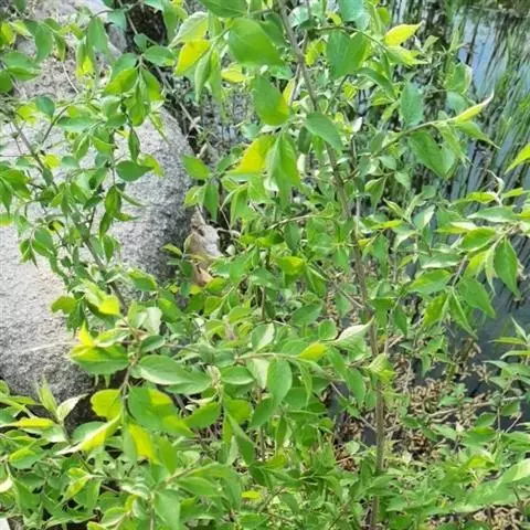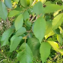叶质地厚,披针状卵形或窄椭圆形,稀卵形或倒卵形,巾脉两侧长宽不等,长1.7~8(常2.5~5)厘米,宽0.8~3(常1~2)厘米,先端尖或钝,基部偏斜,楔形或一边圆,叶面深绿色,有光泽,除中脉凹陷处有疏柔毛外,余处无毛,侧脉部凹陷,叶背色较浅,幼时被短柔毛,后变无毛或沿脉有疏毛,或脉腋有簇生毛,边缘从基部到先端有钝而整齐的单锯齿,稀重锯齿(如萌发枝的叶),侧脉每边10~15条,细脉在两面均明显,叶柄长2~6毫米,仅上面有毛。