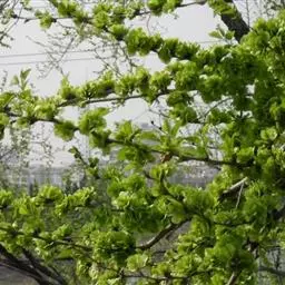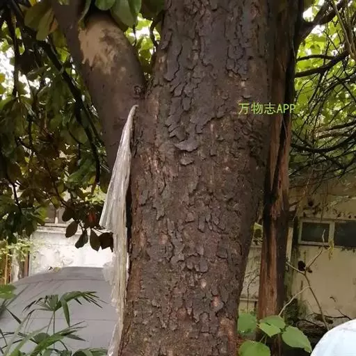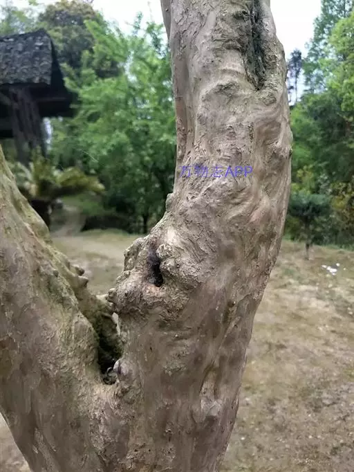 树皮暗灰色,粗糙,不规则纵裂。幼树枝条直立,且被白色毛;老树枝条先端下垂,有时木栓质发达成为瘤状。…
