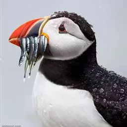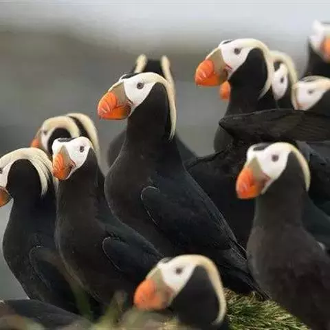 角嘴海雀,是海雀科、角嘴海雀属的中型海鸟,体长32-41厘米,嘴短而粗呈圆锥状、橙色。夏羽上嘴基部…