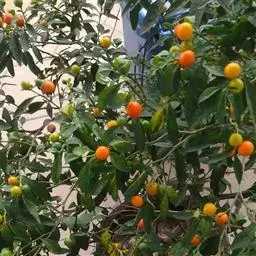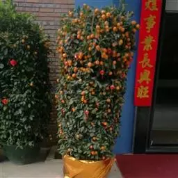 常绿灌木或小乔木。叶椭圆形,两端尖。果扁圆形,朱红色;味甜,可食。产自中国东南部,广东地区大量盆栽。