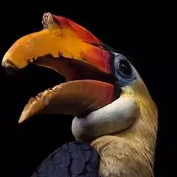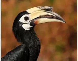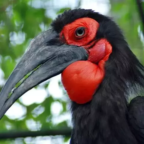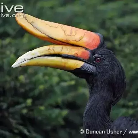 犀鸟是旧大陆的一类热带鸟,属佛法僧目(树栖鸟类的一个目,主要包括佛法僧、翠鸟、戴胜等),犀鸟科。它们的外貌特别引人注目,头骨像头盔,套在突出的喙上面。犀鸟中体型最小的是红喙野村综合研究所鸟,体长约40厘米。最大的大野村综合研究所鸟,身长达160厘米,它是典型的大头、细颈、宽翅膀、长发展巴鸟。羽毛呈褐色或黑色,上面通常都有明显的白色标记。