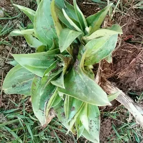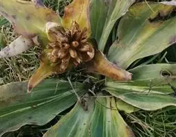 每年6月末到10月发病。此病是危害龙胆草严重的病害。患病叶片出现棕褐色圆形或椭圆形病斑,病斑中央颜色稍浅,边缘褐色,病斑两面处有黑小点,是病原菌的子实体分生孢子器,严重时病斑汇合,叶片枯死,最后导致整株枯萎。6月初至6月中旬用具65%代森锰锌400-500倍液每5-7天喷一次,从6月中旬至于10月用代森锰锌300倍液体3-5天喷一次。也可用于50%多菌灵400倍液体3-5天喷一次与代森锰锌交替使用。