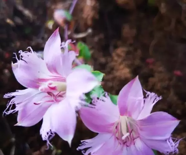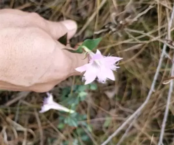 花单生茎顶,无花梗;花萼膜质,有时微带紫色,萼筒长7-13毫米,脉稍突起具狭翅,裂片线状披针形,长5-10毫米,边缘有时疏生睫毛,弯缺圆形;花冠淡红色,上部有紫色纵纹,筒状,上部稍开展,长3-4.5厘米,裂片卵形或卵状三角形,长5-9毫米,宽4-5毫米,先端钝或渐尖,褶宽三角形,比裂片稍短,宽4-5毫米,先端具细长流苏;雄蕊着生于冠筒下部,花丝丝状,长短不等,长者长约12毫米,短者长约5毫米,花药椭圆形,长约3毫米;子房椭圆形,长约10毫米,柄短,长4-5毫米,花柱丝状,长约6毫米,柱头线形,2裂。