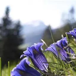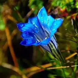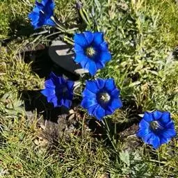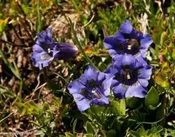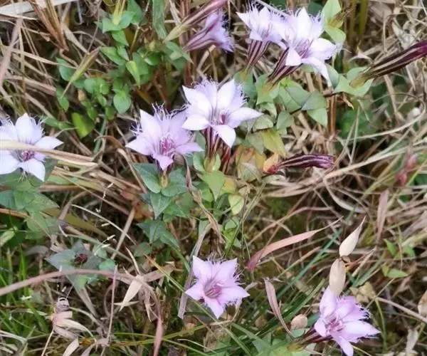 龙胆属植物花色艳丽,色彩丰富,有紫、白、蓝、黄白等多种颜色,适宜作为花坛、花镜或盆花。 龙胆最高不过四、五十厘米,大部份是矮小贴地丛生。一株上有许多分枝,花生于枝上顶端,成古钟形或漏斗形,有4-5个裂瓣,全缘的,也有细裂的成流海似的须。龙胆花在秋冬季一片枯黄的草丛中临风开放,显得分外朴实和幽静,龙胆开花一片片一簇簇,临风摇曳,显出一种淡雅、素静的美,因而成为著名的花卉。