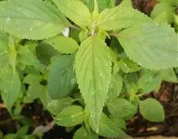 多年生草本,全株具芳香。叶片卵圆形或长圆状卵圆形,先端钝或稍钝,基部宽楔形至近圆形或微性形,全缘或有小锯齿,金黄色。花序呈伞房状圆锥花序,花多,花冠紫红色或白色。小坚果卵圆形,棕褐色花果期7~9月,果期10~12月。