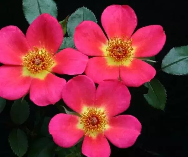 本变种枝条圆筒状,有宽扁皮刺,小叶片3-5,花瓣红色,单瓣,萼片常全缘,稀具少数裂片。
