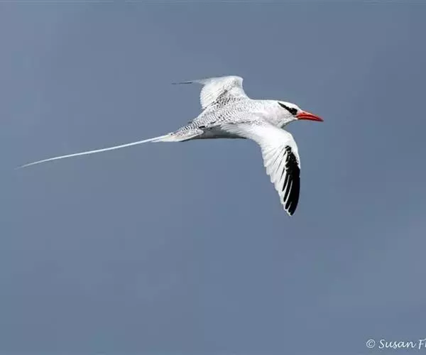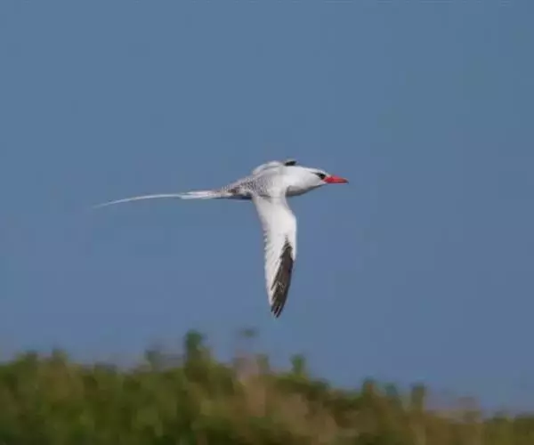 红嘴鹲(学名:Phaethon aethereus)体长约1000毫米,因嘴为红色而得名。形长的中央尾羽白色,长约体长的1/3;嘴红色,大而直,长55-60毫米;眼先有1黑斑,经眼后延至颈,形成1条宽阔的贯眼纹;背具黑色横斑;初级飞羽黑,内翈具宽阔白缘,因嘴红色而得名。除繁殖季节登陆产卵育雏外,其余时间均在海洋上飞翔。有时长期跟随渔船飞行,于桅杆上歇息。多单独或成对活动,主要以飞鱼、乌贼为食,亦吃甲壳类动物。分布于整个热带海洋。