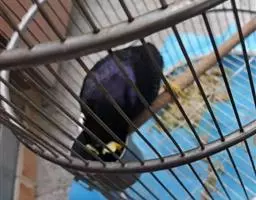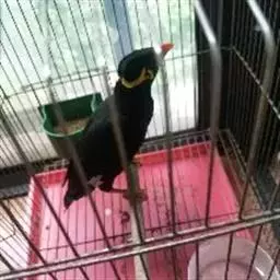 金冠树八哥为椋鸟科树八哥属的鸟类。体长约23厘米,闪辉黑色。特征为具翼斑及颏黄色,脸颊裸露皮肤粉黄色。…