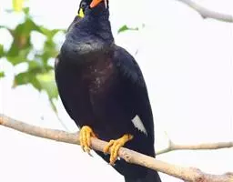 黑冠椋鸟:中等体型的椋鸟,体长21厘米。雄鸟前头为黑色并具金属光泽;头顶、颈项和羽冠亦为黑色;翅及翅上覆羽黑色;尾羽褐色,具白色端斑;上体灰色;下体淡黄褐色。雌鸟形态与雄鸟相似,但羽冠较雄鸟为短。虹膜蓝白或乳黄色;嘴峰铅绿色;跗蹠及爪柠檬黄色。头具黑色羽冠,与其他椋鸟易于区别。主要栖息于开阔落叶阔叶林和灌木林中以及多营巢于树洞中或其他洞穴内。属群鸟共栖。常4-8只结小群活动。鸣声清脆响亮。食物有果实和浆果,偶食花蜜和小型昆虫。分布于印度、中国云南耿马。常见于印度城镇、村庄及铁路沿线。偶见于中国云南西南部和西藏东南部。