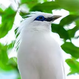 长冠八哥(学名:Leucopsar rothschildi):是一种大型椋鸟,体长约25厘米,雌雄相似,外形俊朗,羽冠发达,眼睛四周和面部裸出,裸露部分为蓝色,全身羽毛纯白色,尾部和翼端的边缘呈黑色,脚灰色。全身白色,具较长冠羽,羽冠不像一些羽冠发达的鸟类复杂多变,却十分有特点,有丝带状的羽冠简洁随意飘洒。1910年由英国鸟类学家沃尔特·罗斯柴尔德(Walter Rothschild)命名。