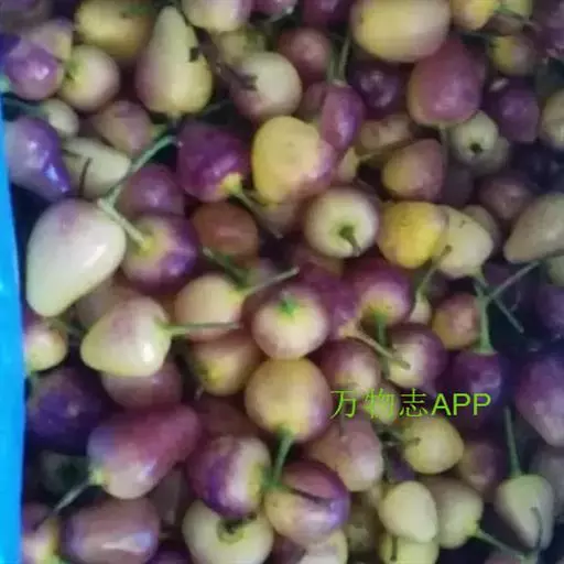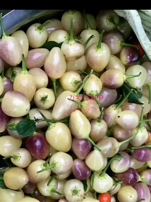 果实下垂,截锥状圆方或多棱形,角圆滑,并有长短高矮之分,果实生于叶腋,果色由绿变红、白、黄、黑紫色等。