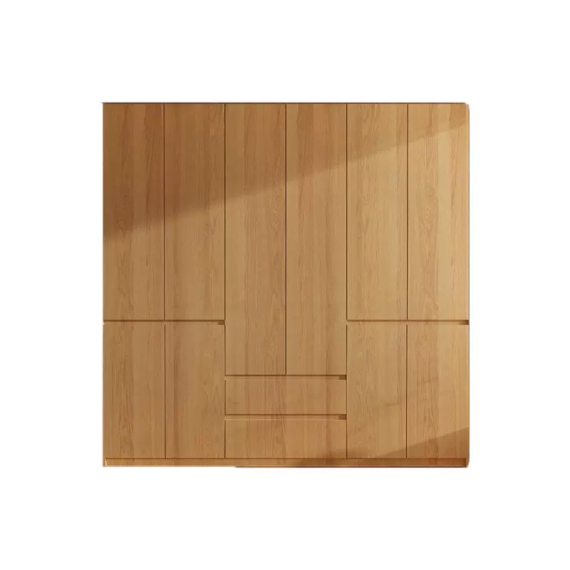 使用实木制作衣柜门板,风格多为古典型,通常价位较高。其门框为实木,以樱桃木色、胡桃木色、橡木色为主。门芯为中密度板贴实木皮,制作中一般在实木表面做凹凸造型,外喷漆,从而保持了原木色且造型优美。这样可以保证实木的特殊视觉效果,边框与芯板组合又可以保证门板强度。