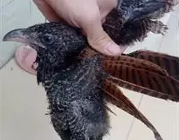 小杜鹃幼鸟背、翅上覆羽和三级飞羽褐色,杂以棕色横斑和白色羽缘;初级飞羽黑褐色,外翈具棕色斑点,内翈具棕色横斑和白色羽端;腰及尾上覆羽黑色至灰黑色。杂以浅棕色和白色横斑;尾黑色,具白色羽干斑和白色端斑,两翈杂以淡棕色横斑;下体白色,具褐色横斑。