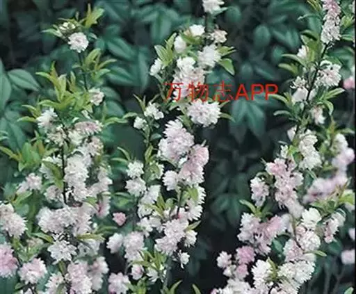麦李(学名:Cerasus glandulosa (Thunb.) Lois.):蔷薇科樱属,落叶灌木,高达2米。叶卵状长椭圆形至椭圆状披针形,长5-8厘米,先端急尖而常圆钝,基部广楔形,缘有细钝齿,两面无毛或背面中肋疏生柔毛;叶柄长4-6毫米。花粉红或近白色,径约2厘米,花梗长约1厘米。果近球形,径1-1.5厘米,红色。