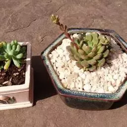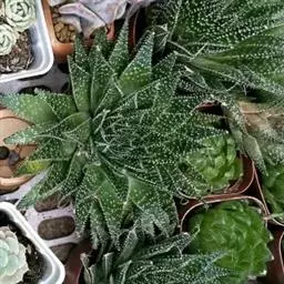 翠花掌叶色斑斓,花朵鲜艳,是一种既可观叶、又能赏花的小型观赏芦荟。适合用小盆栽种,点缀窗台、几案等处。而千代田之光则是芦荟中的珍贵品种,多肉植物爱好者可作为品种收集栽培。