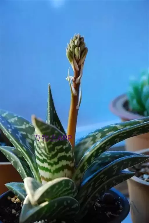 翠花掌(学名:Gonialoe variegata (L.) Boatwr. & J.C.Manning ),阿福花科什锦芦荟属 [1-3] ,多年生植物。原产于非洲。喜温暖、干燥、阳光充足的生长环境,耐半荫,不耐寒,忌高温多湿。翠花掌叶色斑斓,花朵鲜艳,是一种既可观叶、又能赏花的小型观赏芦荟。