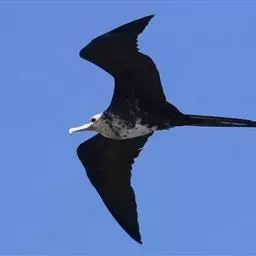 阿岛军舰鸟是军舰鸟科军舰鸟属的大型海鸟,全身黑色羽毛,喙大而锐,尾似燕,给人以强健的印象。主要以飞…