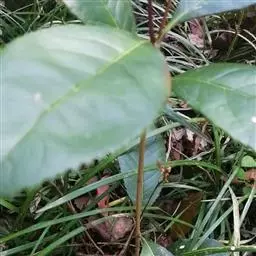 多年生常绿草本,高-3米,稀达6米,树皮灰黑带紫色;枝条细长,常左右曲折,无毛,常有纵纹,淡褐色。叶长圆形至椭圆形,厚革质,长(8-)12-14(-15)厘米,宽3.5-4.5厘米,先端尾状长渐尖,尖尾长1-1.5厘米,基部钝圆或楔形,边缘具细密锯齿,无毛,背面密被褐色斑点或疏被斑点,中脉在表面凹入,在背面隆起,侧脉5-8对,自中脉伸出,连同网脉在两面明显;叶柄粗短,长5-6毫米,无毛。总状花序腋生,长5-7(-9)厘米,疏生多花,序轴被短柔毛;花梗长5毫米,稀达8毫米,被柔毛;苞片卵形,直径约1.5毫米,急尖,具缘毛;小苞片2,对生或近对生,着生于花梗中部以下,卵形,长约1毫米.具微缘毛;花萼5裂,裂片卵状三角形,长约2毫米,无毛或疏被微缘毛;花冠白色,卵状坛形,口部收缩,5浅裂,外面无毛;雄蕊10枚,花丝长约1毫米,下部宽,被毛,每药室顶端具2芒;子房密被白色绒毛,花柱粗壮,柱头不规则4裂。浆果状蒴果球形,直径约7毫米,黑色或紫黑色;种子细小。花期5-7月,果期8-10月。