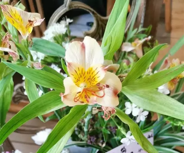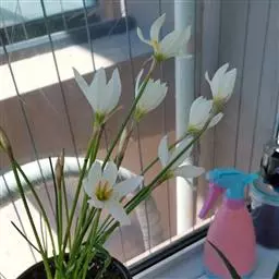6、修剪:六出花盆栽常用12~15厘米盆,10月中旬盆栽,栽植深度3~5厘米,栽后浇透水,30天后长出叶芽。入冬后,新芽生长迅速,茎叶密生,影响基部花芽生长,需疏叶,去除细小的叶芽,保留粗壮的花芽,达到株矮、花多的目的。